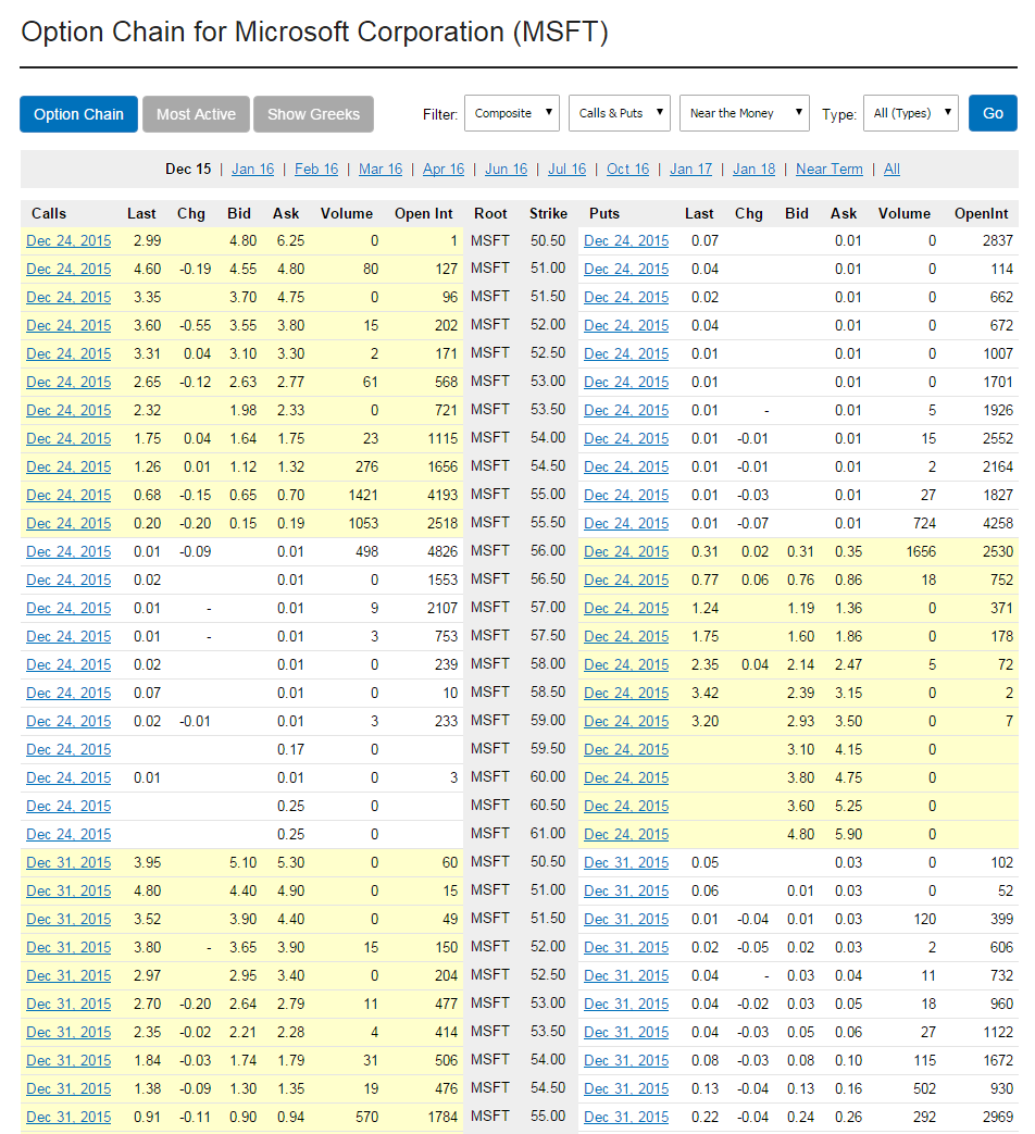 Users are also able to view the Most Active options for a security, as well as Greeks.